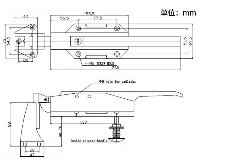 A 10 cm push rod is suitable for cold storage doors with a thickness of 10 cm or less. A 15 cm push rod is suitable for door panels with a thickness of 12-15 cm. The push rod can be cut to fit the thickness of your door.