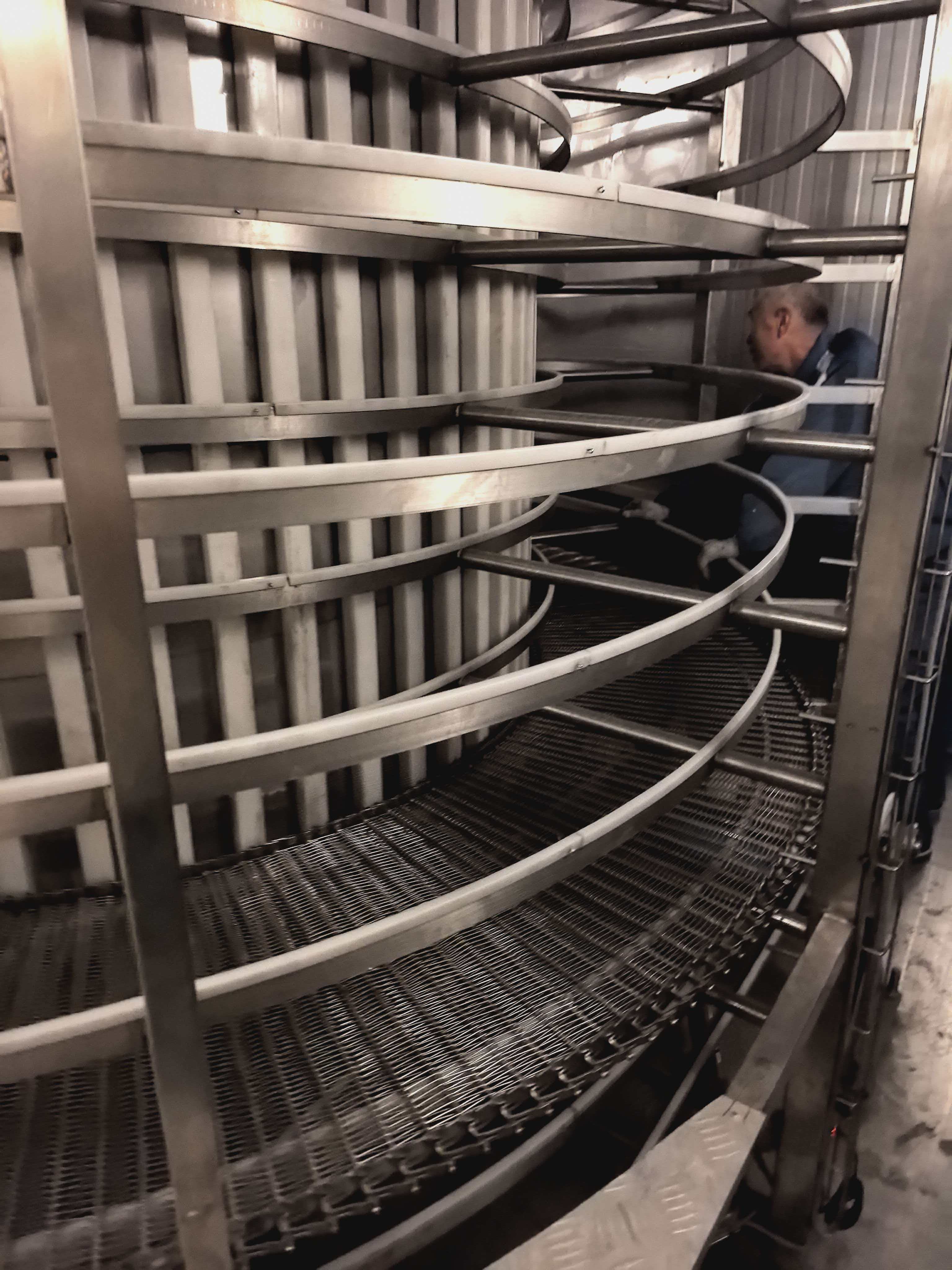 A single spiral freezer is a highly efficient freezing system that can freeze a large quantity of products in a limited space